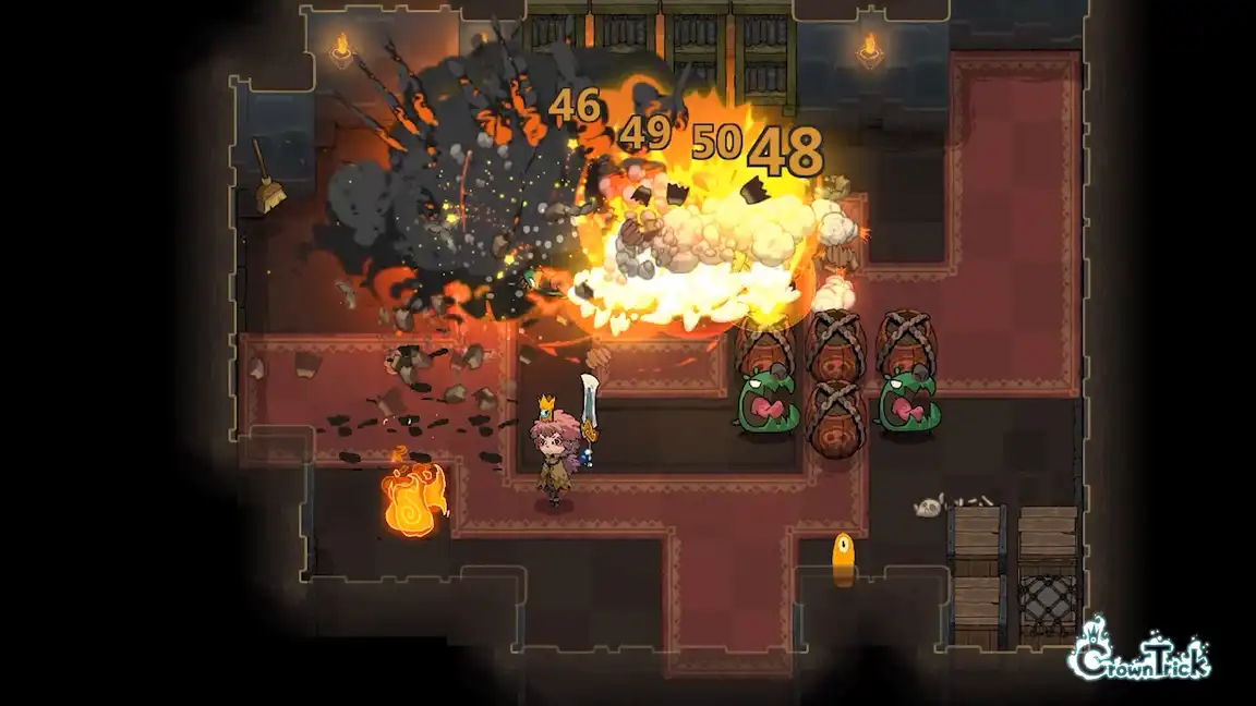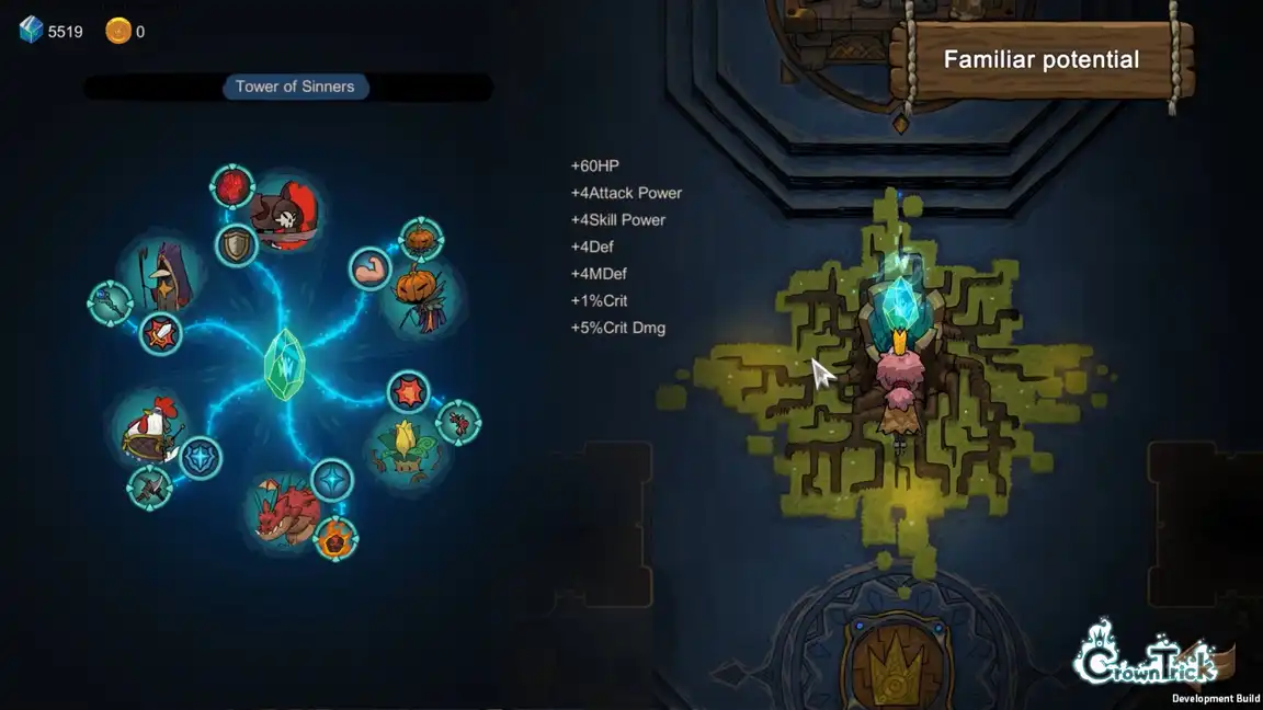 Enter a dream realm where you must save the Nightmare Realm from a mysterious threat in Crown Trick. As Elle, you'll strategically navigate dungeons that shift with every move you make. Plan your attacks, master elemental skills, and combine abilities to escape the dungeons.