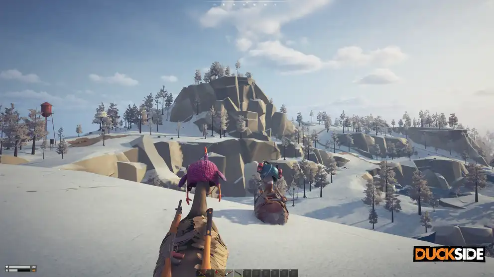 In DUCKSIDE, survival demands more than just quacking. Scavenge, build, and team up with your feathered friends in this massive multiplayer online shooter. Or betray them all; either way, prepare for intense PvP action.