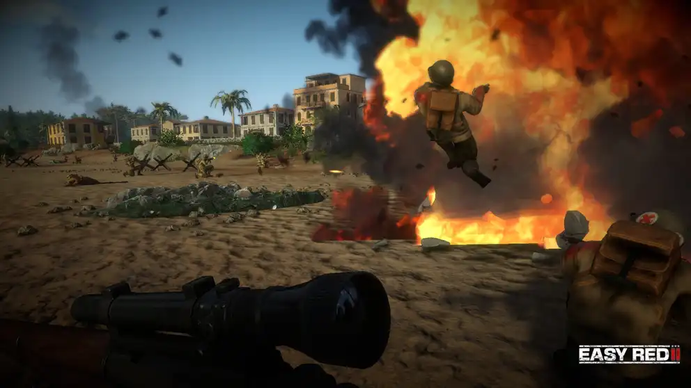 Engage in heavy World War II battles in Easy Red 2. This tactical first-person shooter takes you to the Italian and Pacific fronts, commanding infantry and vehicles in fierce combat. Exploit enemy weaknesses and coordinate maneuvers to dominate dynamic battlefields.