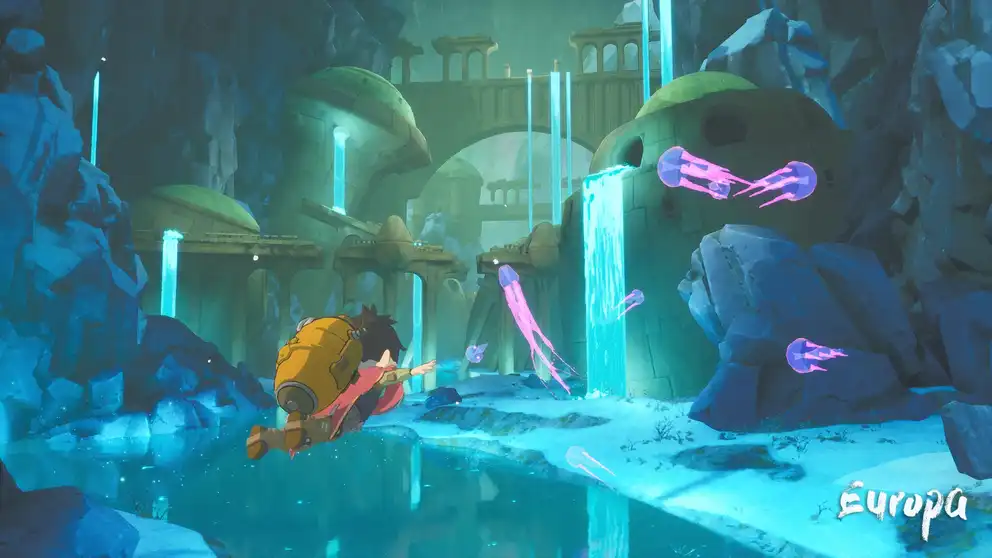 With reversed gravity boots and your Zephyr, seamlessly transition from running along the ground to soaring through the air. Upgrade your jetpack to reach new heights and uncover Europa's deepest secrets.
