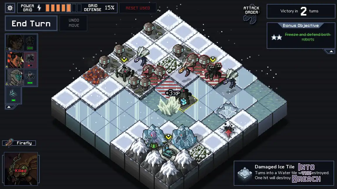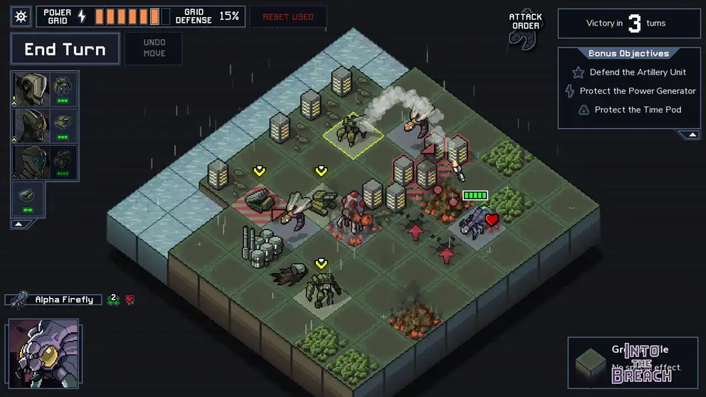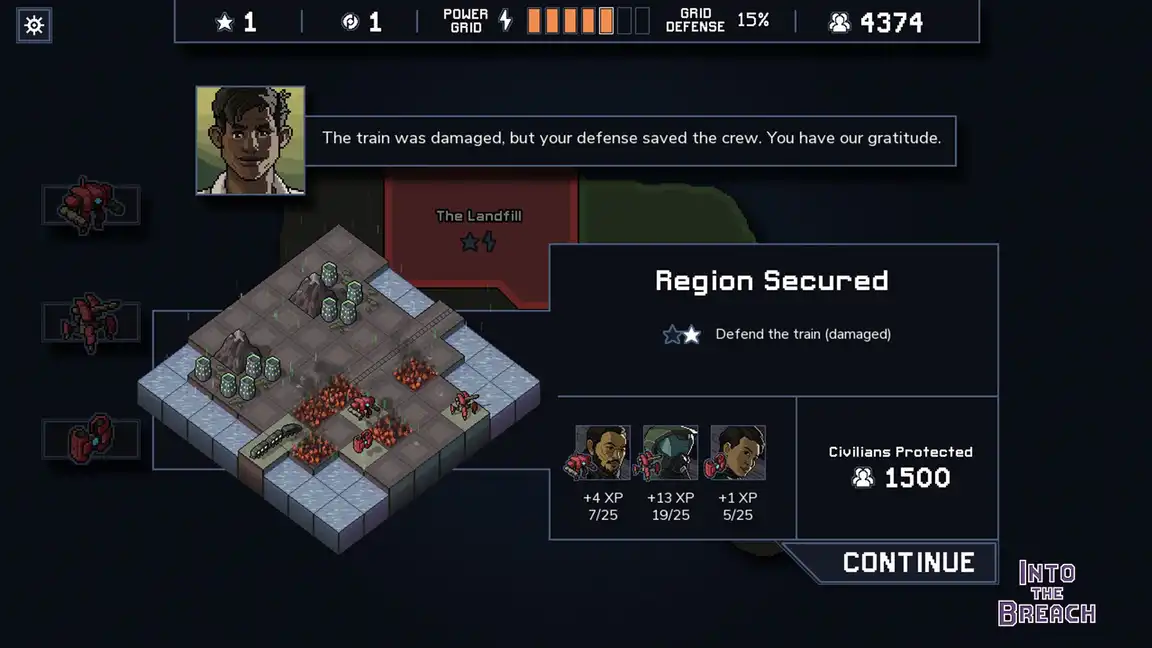 - Defend the cities: Civilian buildings power your mechs. Protect them from the Vek!
