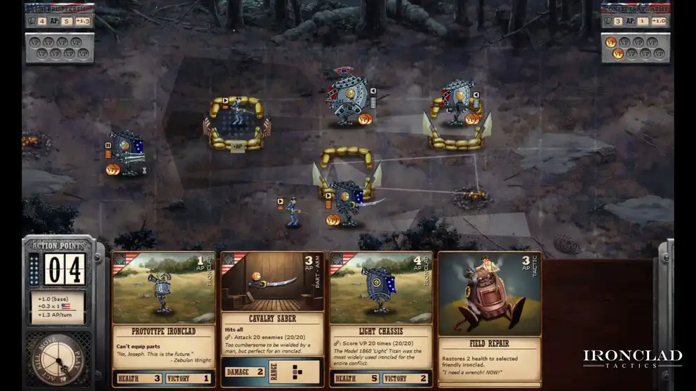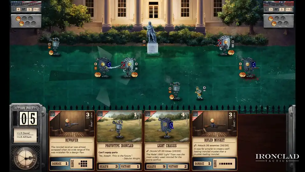 In a gripping alternate history, the Civil War clashes with advanced Steampunk robots! Take the lead in Ironclad Tactics, commanding a motley crew through intense battles that fuse card game strategy with real-time tactical action.