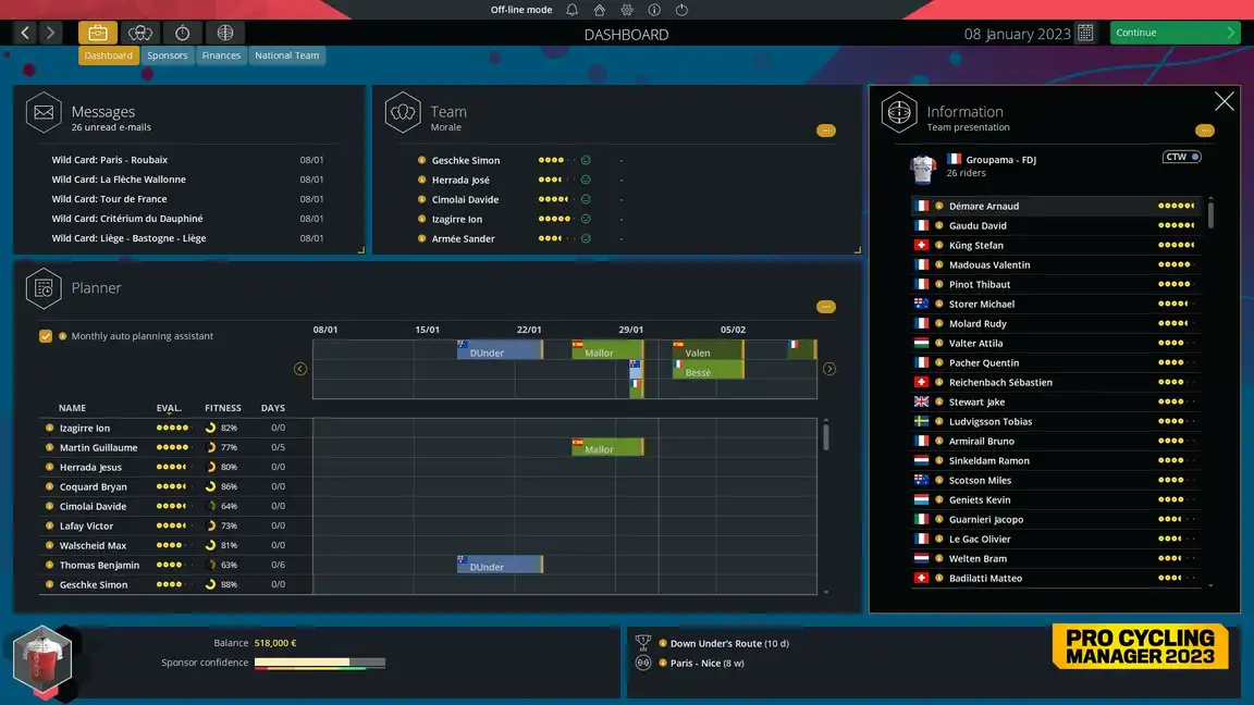 Take the reins in Pro Cycling Manager 2023 and turn your strategic vision into global cycling glory. Plan training, negotiate contracts, secure sponsorships, then dictate tactics in high-stakes competitions to dominate the circuit. Put your stamp on the sport!