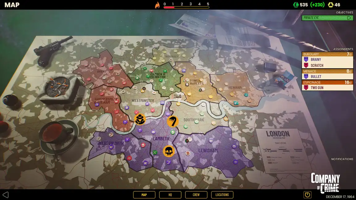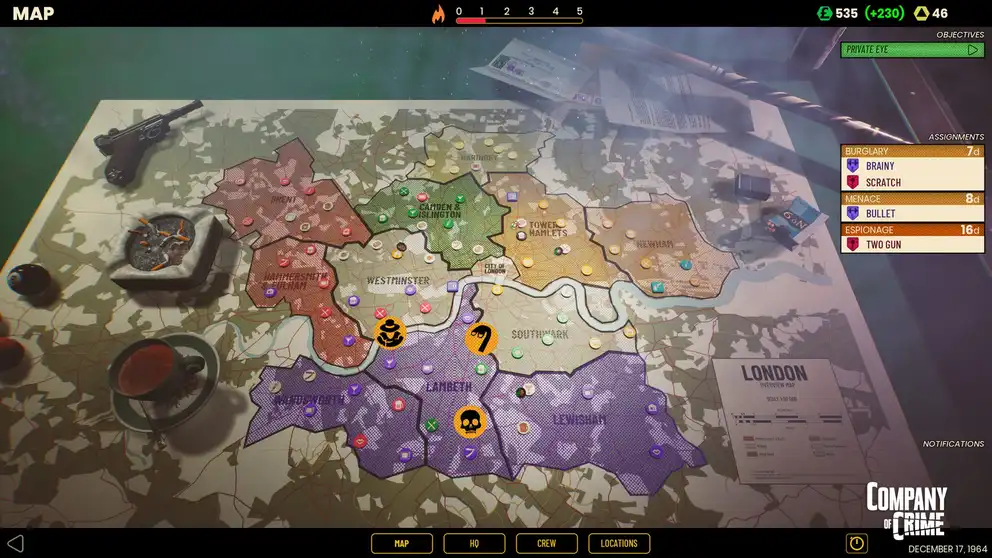 Лондон, 1960-е. В Company of Crime вы возглавите преступный синдикат или оперативную группу Скотланд-Ярда. Интриги, насилие и пошаговые криминальные схемы.