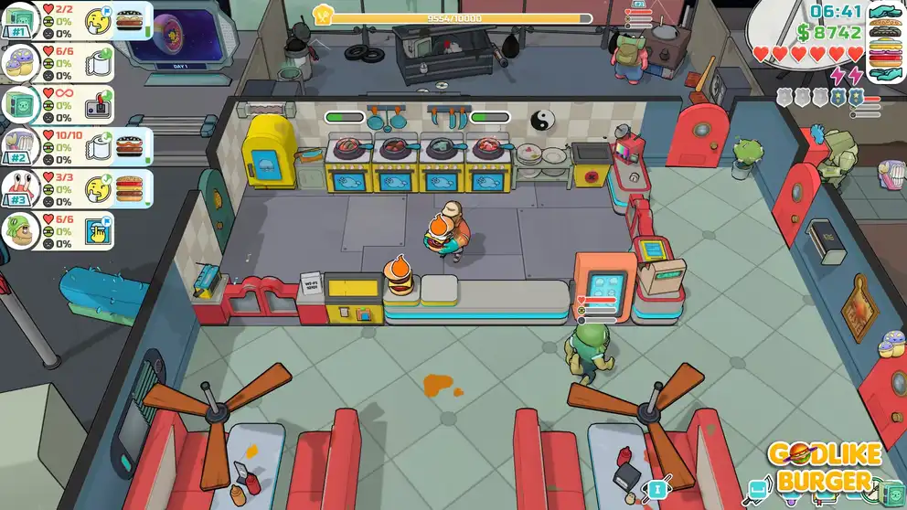 В Godlike Burger готовьте бургеры из посетителей, но главное — не станьте следующим блюдом! Управляйте рестораном, где свежее мясо всегда под рукой.