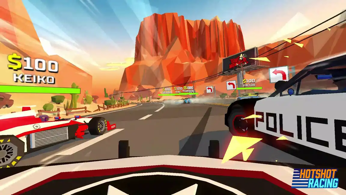 Яркие цвета, бешеные скорости и захватывающий дух соперничества — вот что такое Hotshot Racing! Это динамичные аркадные гонки в ретро-стиле, где важна каждая секунда.