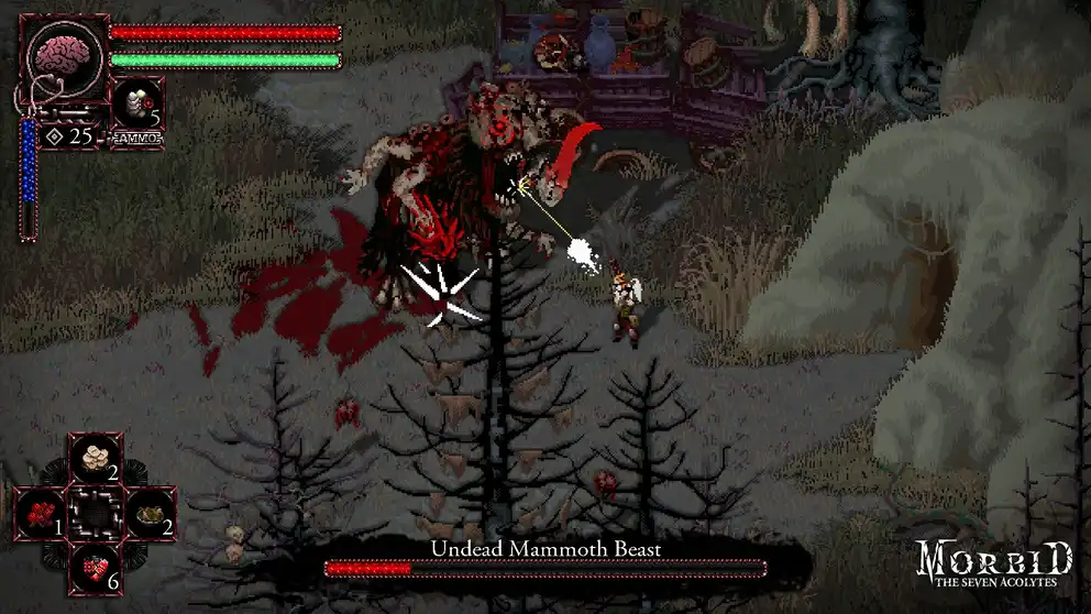 - Мрачная пиксельная графика в стиле хоррор.