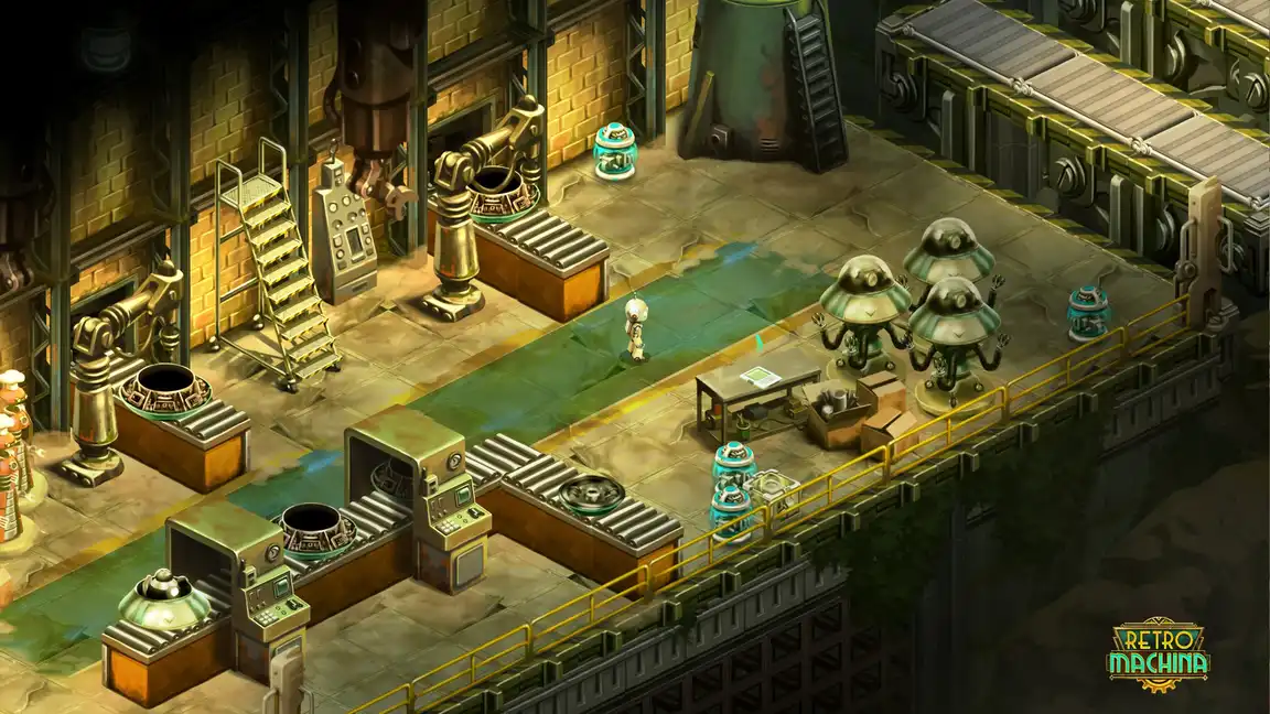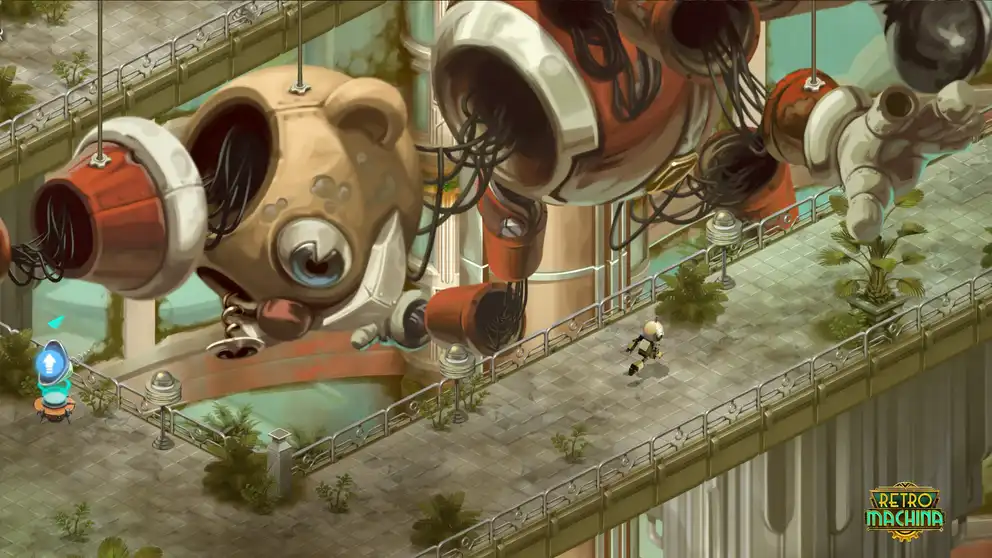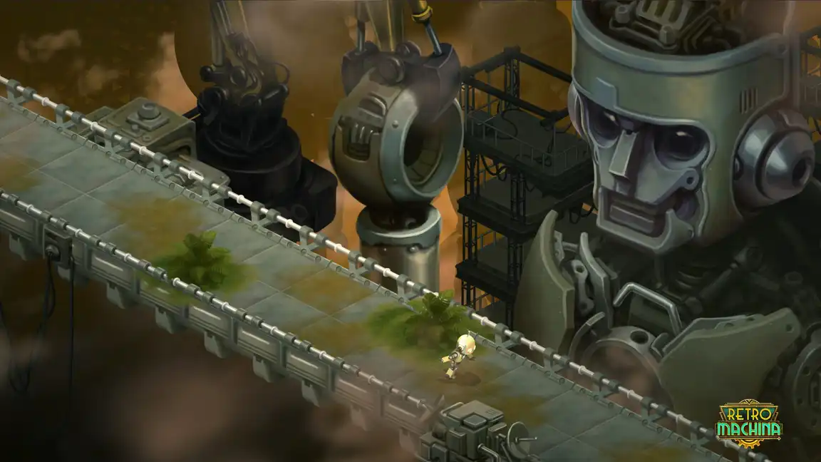 Π Retro Machina Π²Π°ΠΌ ΠΏΡΠ΅Π΄ΡΡΠΎΠΈΡ ΠΈΠ³ΡΠ°ΡΡ Π·Π° ΠΎΠ΄ΠΈΠ½ΠΎΠΊΠΎΠ³ΠΎ ΡΠΎΠ±ΠΎΡΠ°, ΠΈΡΡΠ»Π΅Π΄ΡΡΡΠ΅Π³ΠΎ Π·Π°Π±ΡΠΎΡΠ΅Π½Π½ΡΠΉ ΠΌΠΈΡ. ΠΡΠΈΠΌΠΈΡΠ΅ ΡΡΠ°ΡΡΠΈΠ΅ Π² ΠΏΡΠΈΠΊΠ»ΡΡΠ΅Π½ΠΈΠΈ, ΠΏΠΎΠ»Π½ΠΎΠΌ Π΄Π΅ΠΉΡΡΠ²ΠΈΡ, ΠΏΠΎ Π°Π½ΡΠΈΡΡΠΎΠΏΠΈΡΠ΅ΡΠΊΠΈΠΌ Π·Π΅ΠΌΠ»ΡΠΌ, Π³Π΄Π΅ Π³ΠΎΠ»ΠΎΠ²ΠΎΠ»ΠΎΠΌΠΊΠΈ ΠΏΠ΅ΡΠ΅ΠΏΠ»Π΅ΡΠ°ΡΡΡΡ Ρ Π½Π΅ΠΎΠ±ΡΡΠ½ΡΠΌ Π΄ΠΈΠ·Π°ΠΉΠ½ΠΎΠΌ.