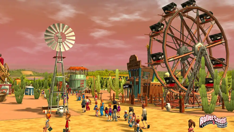 Почувствуйте себя настоящим магнатом парка развлечений в RollerCoaster Tycoon 3. Проектируйте захватывающие американские горки и аттракционы, планируйте расположение магазинов и зон отдыха, нанимайте персонал и следите за бюджетом, чтобы создать парк мечты. Удовлетворите потребности посетителей и станьте королем индустрии развлечений!