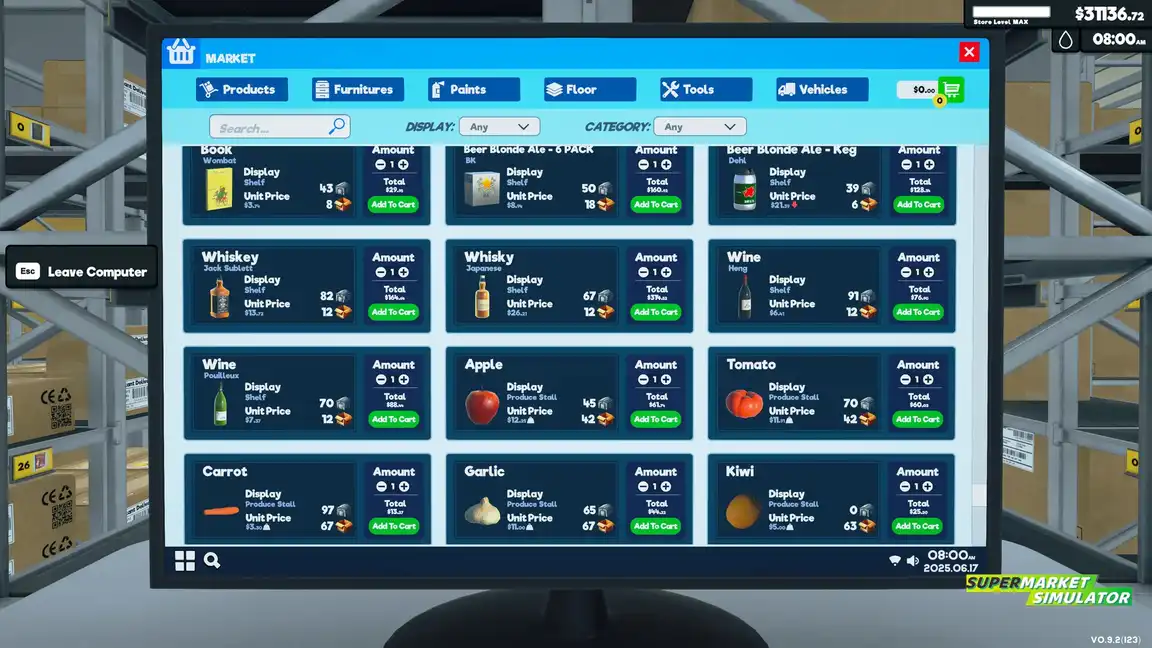 Почувствуйте себя хозяином собственного магазина в Supermarket Simulator! От пустых полок до прибыльного бизнеса – всё в ваших руках. Заказывайте продукты, расставляйте их, устанавливайте цены и следите за сроком годности.