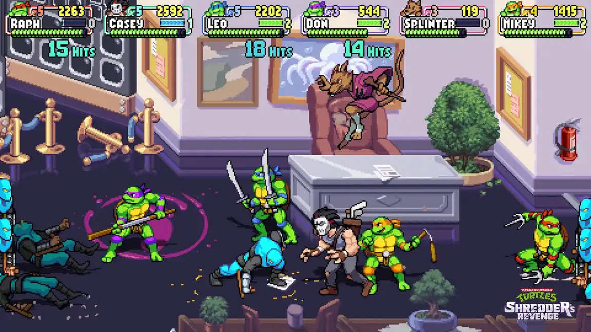Π¨ΡΠ΅Π΄Π΄Π΅Ρ Π²Π΅ΡΠ½ΡΠ»ΡΡ, ΡΡΠΎΠ±Ρ ΠΎΡΠΎΠΌΡΡΠΈΡΡ! Π Teenage Mutant Ninja Turtles: Shredder's Revenge Π²Π°ΠΌ ΠΏΡΠ΅Π΄ΡΡΠΎΠΈΡ Π² ΡΠΎΠ»ΠΈ ΡΠ΅ΡΠ΅ΠΏΠ°ΡΠ΅ΠΊ ΠΈΠ»ΠΈ ΠΈΡ ΡΠΎΡΠ·Π½ΠΈΠΊΠΎΠ² ΡΠΎΡΠ²Π°ΡΡ ΠΊΠΎΠ²Π°ΡΠ½ΡΠ΅ ΠΏΠ»Π°Π½Ρ Π·Π»ΠΎΠ΄Π΅Ρ Π² Π·ΡΠ±ΠΎΠ΄ΡΠΎΠ±ΠΈΡΠ΅Π»ΡΠ½ΠΎΠΌ ΡΠΊΡΠ΅Π½-ΡΠ°ΠΉΡΠΈΠ½Π³Π΅. ΠΠ΅ΠΉΡΠ΅ Π²ΡΠ°Π³ΠΎΠ² Π½Π° ΡΠ·Π½Π°Π²Π°Π΅ΠΌΡΡ Π°ΡΠ΅Π½Π°Ρ ΠΈ ΠΏΡΠΎΠΊΠ°ΡΠΈΠ²Π°ΠΉΡΠ΅ ΡΠ½ΠΈΠΊΠ°Π»ΡΠ½ΡΠ΅ Π½Π°Π²ΡΠΊΠΈ ΠΏΠ΅ΡΡΠΎΠ½Π°ΠΆΠ΅ΠΉ.