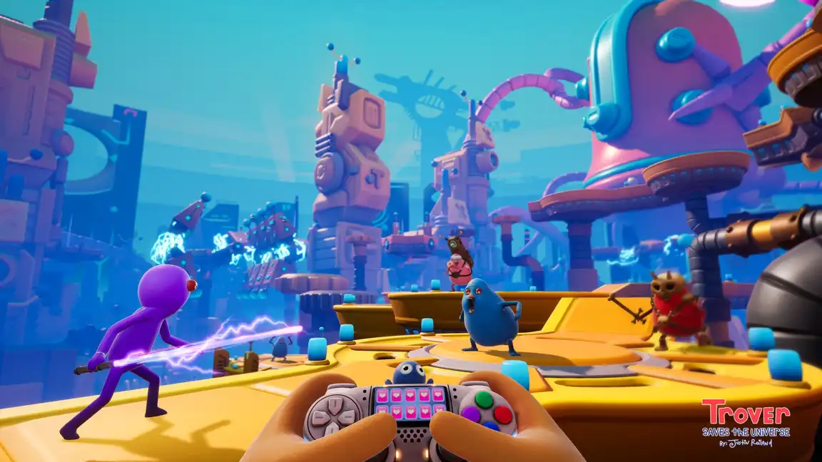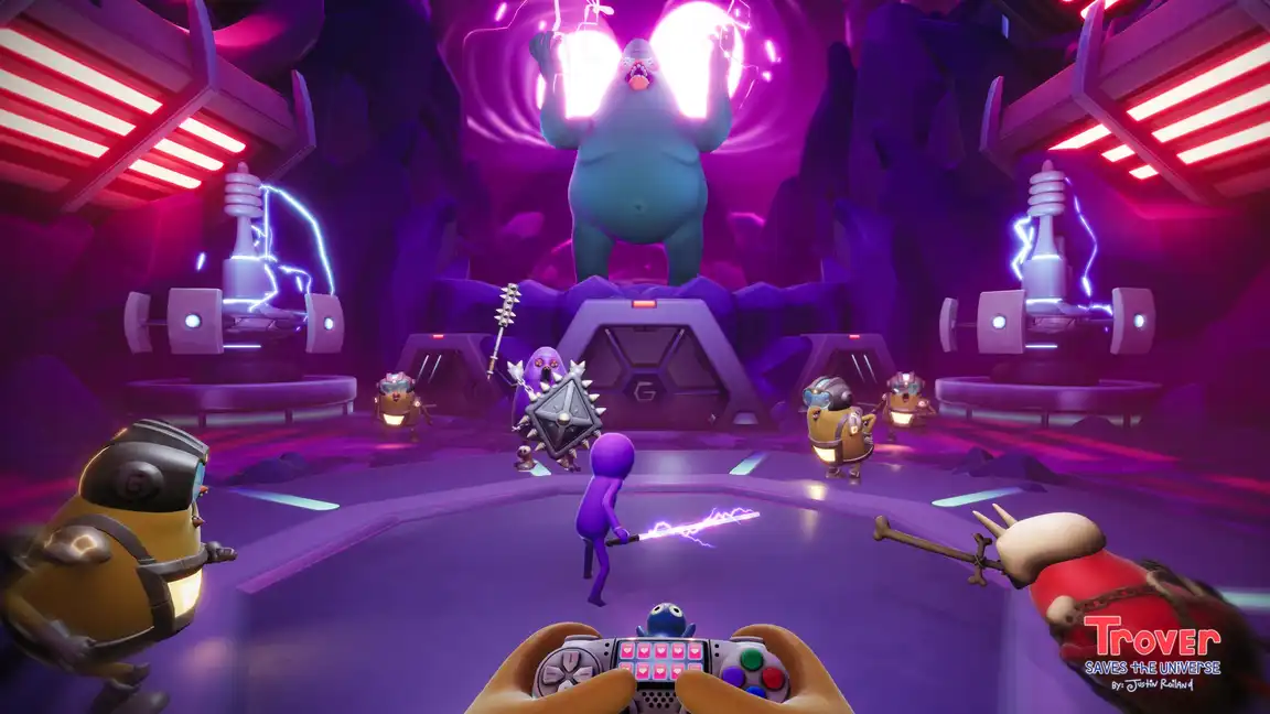 ΠΡΠ΅Π»Π΅Π½Π½Π°Ρ ΠΈΠ³ΡΡ Trover Saves The Universe Π² ΠΎΠΏΠ°ΡΠ½ΠΎΡΡΠΈ! ΠΠΎΠ²Π°ΡΠ½ΡΠΉ Π·Π»ΠΎΠ΄Π΅ΠΉ Π·Π°ΠΌΡΡΠ»ΠΈΠ» Π½Π΅ΠΌΡΡΠ»ΠΈΠΌΠΎΠ΅, ΠΈ ΡΠΎΠ»ΡΠΊΠΎ Π²Ρ, ΠΎΠ±ΡΠ΅Π΄ΠΈΠ½ΠΈΠ²ΡΠΈΡΡ Ρ ΡΠΈΠΎΠ»Π΅ΡΠΎΠ²ΡΠΌ ΠΌΠΎΠ½ΡΡΡΠΎΠΌ Π’ΡΠΎΠ²ΠΎΠΌ, ΡΠΌΠΎΠΆΠ΅ΡΠ΅ Π΅Ρ ΡΠΏΠ°ΡΡΠΈ.